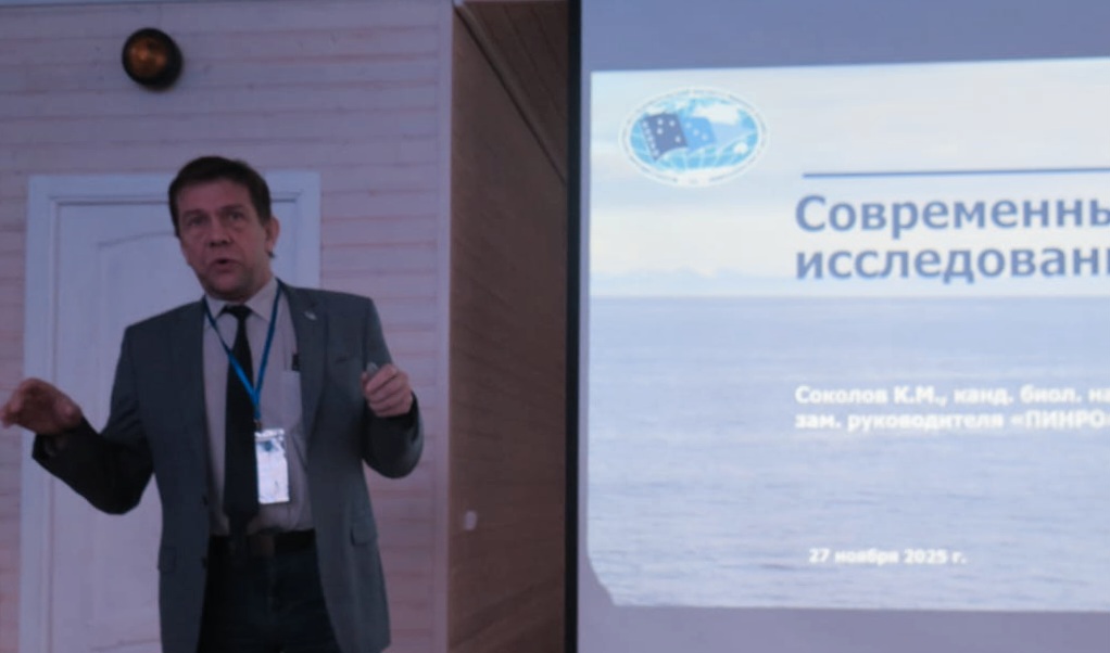 Евгений Сентябов представил доклад «Научные экспедиции ПИНРО в арктических морях» об истории экспедиций, выполняемых на судах ПИНРО начиная с прославленного «Персея» до наших дней. Константин Соколов выступил с докладом «Современные прикладные исследования в Арктике».