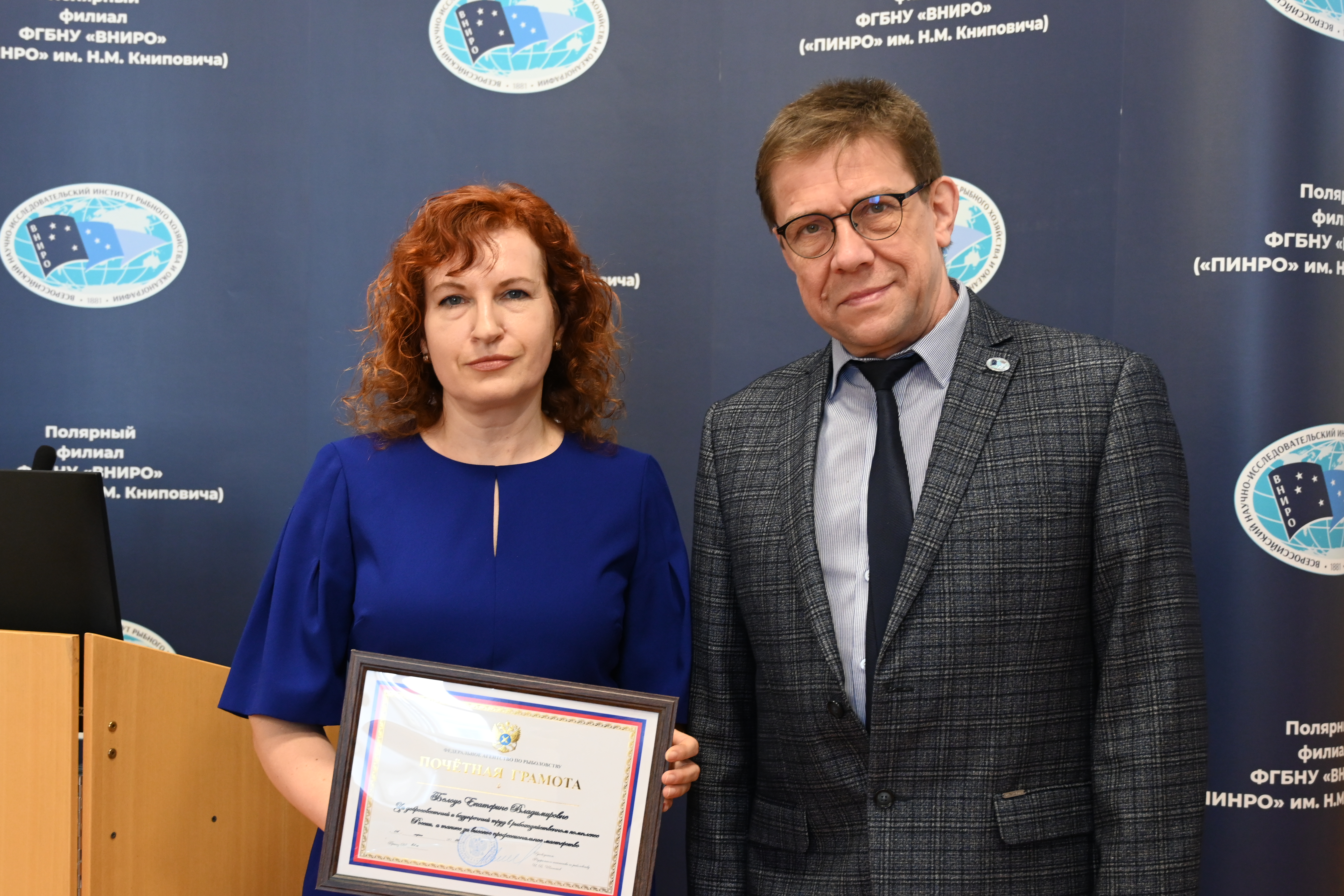 Также в торжественной обстановке Врио руководителя Полярного филиала ВНИРО Константин Соколов вручил подведомственные награды отличившимся сотрудникам.